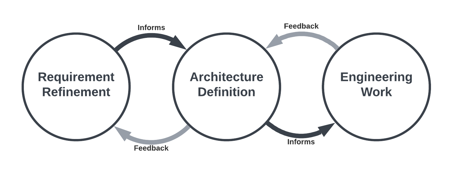 As mentioned earlier, figuring out how to slot architecture work into your organization's delivery process without blocking engineering work is a challenge and you should tackle it early. If allowed, the architecture definition process can draw out into a near never-ending refinement process and, as an architect, you may feel an expectation for you to produce a complete, watertight architecture specification before development commences. This, though, does not work with iterative agile development methodologies.
